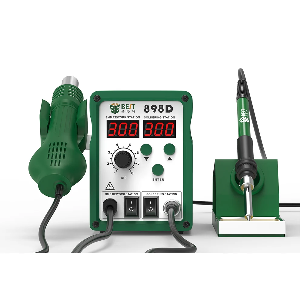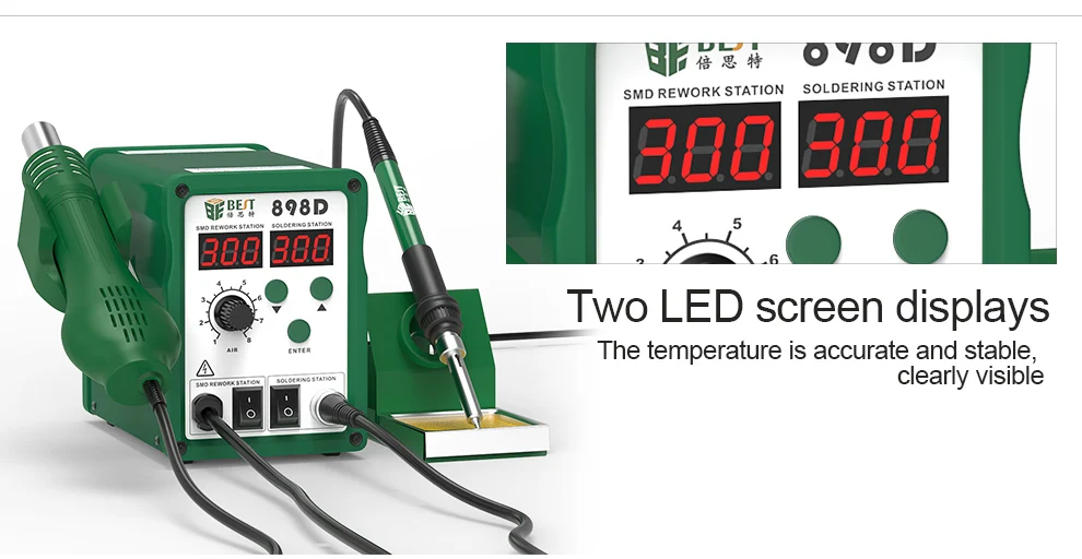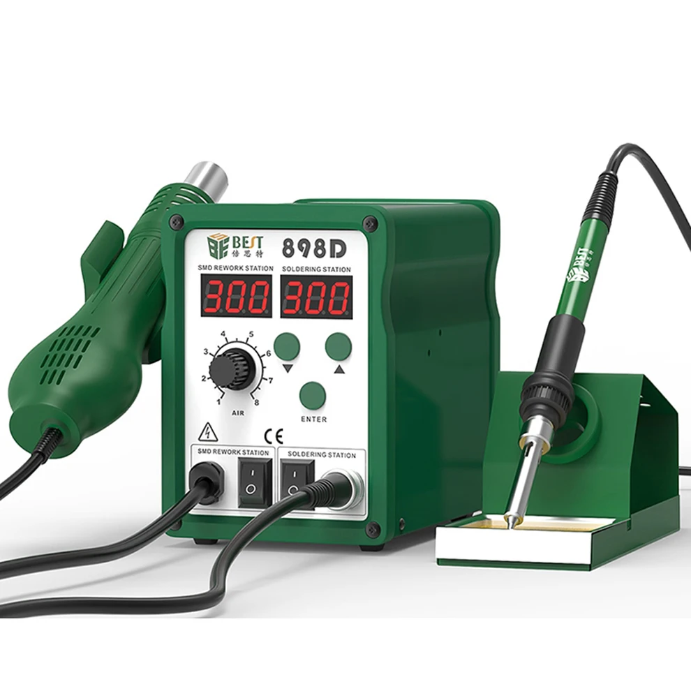 BEST-898D без примесей свинца и спиральная Тепловая пушка 2 в 1 может регулироваться двойной Дисплей паяльной станции паяльник для PCB SMT SMD паяльная