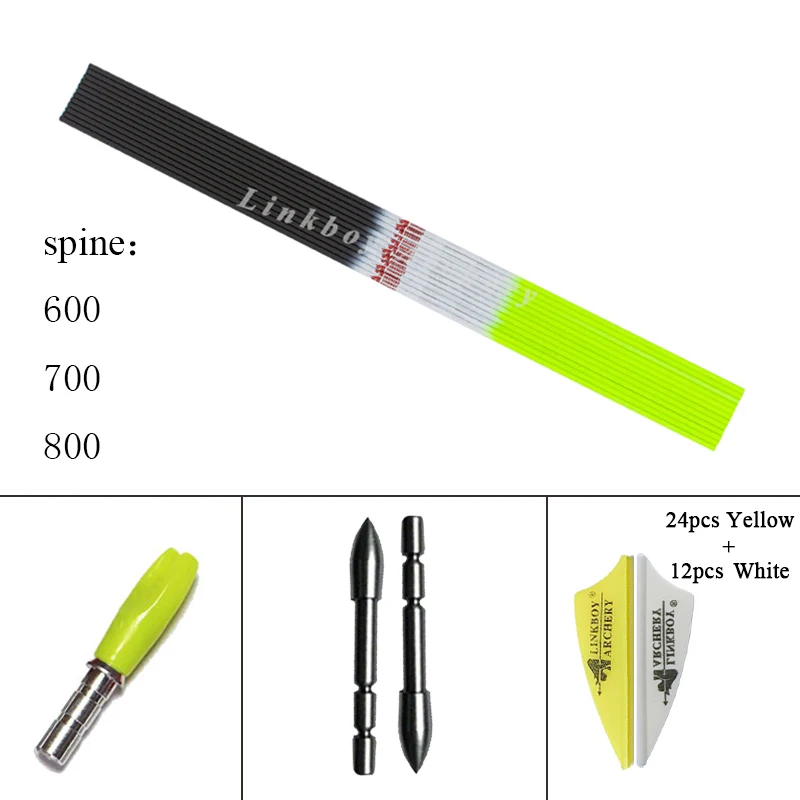 12 шт. Linkboy карбоновые стрелы для стрельбы из лука вал Sp600 700 800 30 дюймов 1,75 дюймов пластиковые лопасти 80гр наконечники изогнутый лук съемка