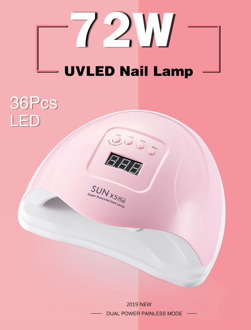 SUN X5 Plus 72 Вт Светодиодный светильник для ногтей с автоматическим датчиком Сушилка для ногтей УФ-лампа для маникюра Гель-лак сушка для отверждения гель-лака для ногтейОсобенности1. Двойной светильник: 365нм + 405нм. Отверждение всех видов гелей2. Профессиональное использование салона3. Белый/розовый на выбор.4. Умная инфракрасная индукция5. 10s/30s/60s/99s дополнительная кнопка6. Быстрая Сушка на 30 секунд7. 1 год гарантии8. Размер: 230*210*100 ммСписок посылка1 * лампа для ногтей1 * адаптер1 * Руководство пользователя Уведомление1. Пожалуйста, внимательно прочитайте руководство пользователя перед использованием.2. Чтобы сохранить длительный срок службы, не включайте светодиоды более 600 секунд.FQA1. Нажмите кнопку времени или руки в машину directlyto для запуска лампы ногтя.2. Продукт не имеет вентилятора, много охлаждающих отверстий, и эффект рассеивания тепла очень хорош.3. Инфракрасная индукция будет напрягаться, когда рука в ногтевой лампе, всегда работает.4. Продукт имеет вилки для ЕС, Австралии, США, Великобритании, мы отправим соответствующую вилку в соответствии с вашей страной.
