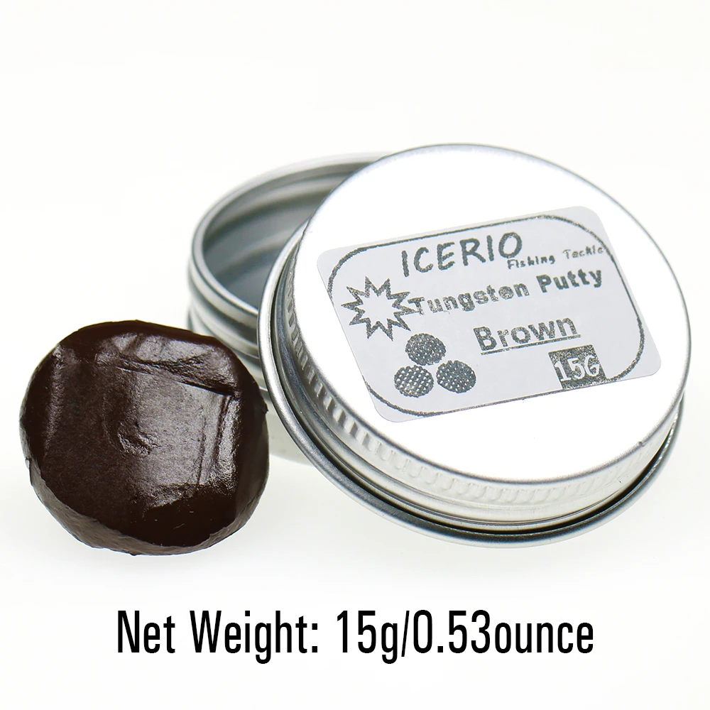 ICERIO's Tungsten Mud Putty High quality tungsten putty that can be moulded directly onto hooklinks to counter balance Pop-Ups or to make critically balanced baits. Our High Density Tungsten Putty is super pliable, making it easy to mould around swivels, sinkers, knots or line. Top Tip: To make application and shaping easy, simply roll a small piece of putty between the hands to soften. Key Features: 1. Suitable for various applications 2. Optimum density 3. Mould around a swivel or hooklink 4. Excellent adhesive properties 5. Fantastic durability 6. Extremely easy to mould 7. Available in three colours: Weedy Green, Chod Silt, Camo Brown Packing Unit: 15 Grams per tub