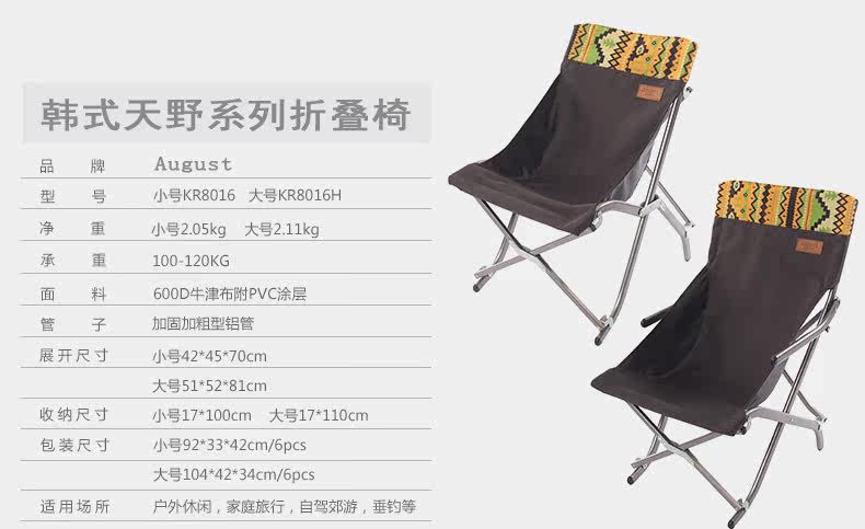 Материалы: 600D Оксфорд с покрытием из ПВХ Трубка: алюминий Размер L: Вес: около 2,11 кг Подшипник: 100kgs Разворачивающийся Размер: 51*52*81 см Размер в складку: 110*17 см Размер S: Вес: около 2,05 кг Подшипник: 120kgs Разворачивающийся Размер: 45*42*70 см Размер в складку: 100*17 см Для: Повседневность, кемпинг, рыбалка