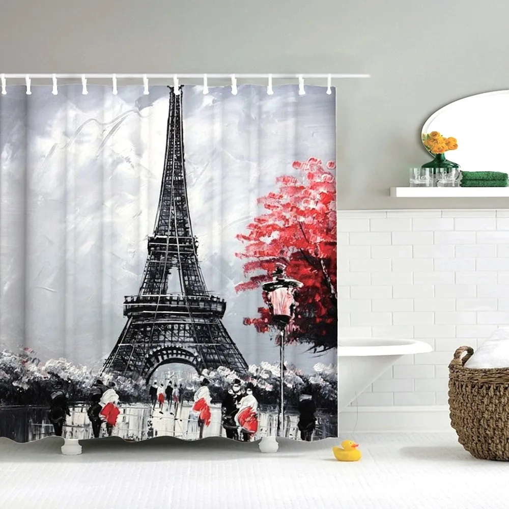 Dafield занавески для душа винтажный дизайн Романтический Французский Париж Eiffeltower художественный узор водонепроницаемый декор для ванной комнаты с крючками