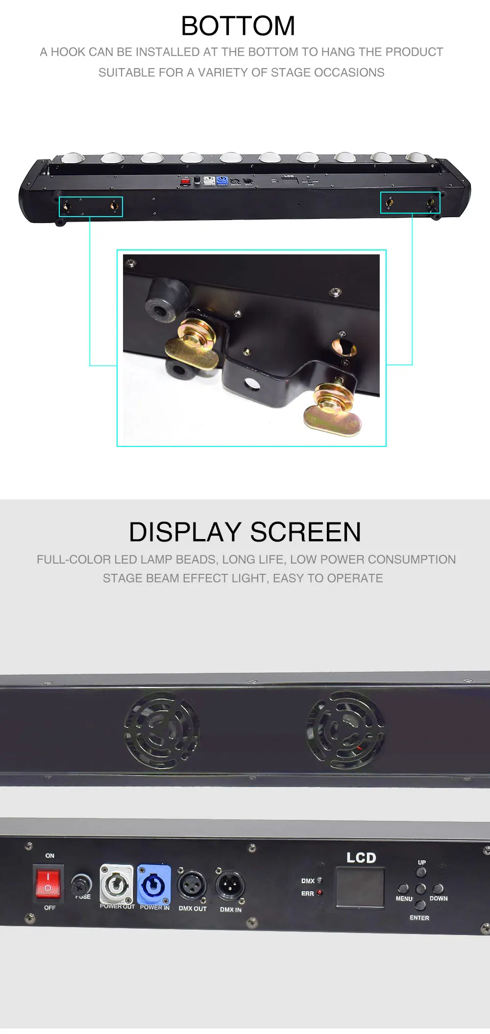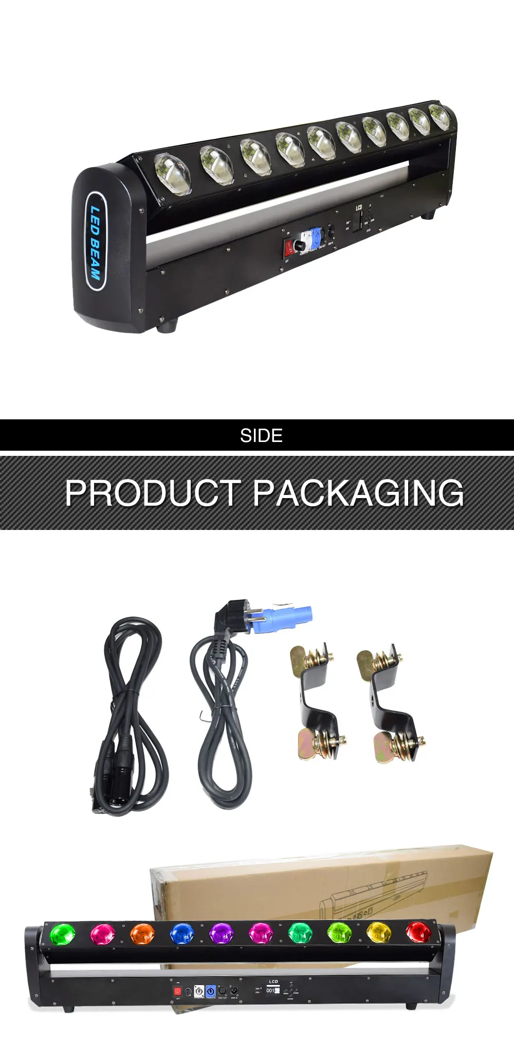 1,10 шт. 40 Вт Cree led может управлять одним контролем.2. Срок службы светодиодов: 20000 ч, затухание света менее 30%.3. Дополнительная кривая затемнения, 65536 электронное затемнение, супер гладкая и мерцающая4. Стробоскоп 1-30 раз/С Электронный стробоскоп и случайный стробоскоп.5. Система смешивания цветов RGBW, одноточечный контроль и Одноцветный контроль, богатая и переменная форма, сильное трехмерное чувство луча.6. Подходит для клуба, ТВ-шоу, сцены, театра, представления, парка развлечений, свадьбы и т. д.Описание:Напряжение: AC90-240V, В переменного тока, 50-60 ГцDMX канал: 12/46 CHМощность: 500WИсточник светодиодов: 10 шт. 40 Вт RGBW 4в1 LEDУгол объектива: 2 °Y: 0-230 градусовРежим управления: DMX 512, звук, авто, мастер-рабСистема охлаждения: система воздушного охлажденияЭффект: 16 автоматических динамических эффектов, 16 звуковых динамических эффектовIP: IP20N.W. : 9 кгРазмер упаковки продукта: 116x15x22cmПакет включает в себя:1 шт. движущаяся головка сканирующего света1 шт. кабель питания1 шт. DMX кабель1 шт. Руководство пользователя