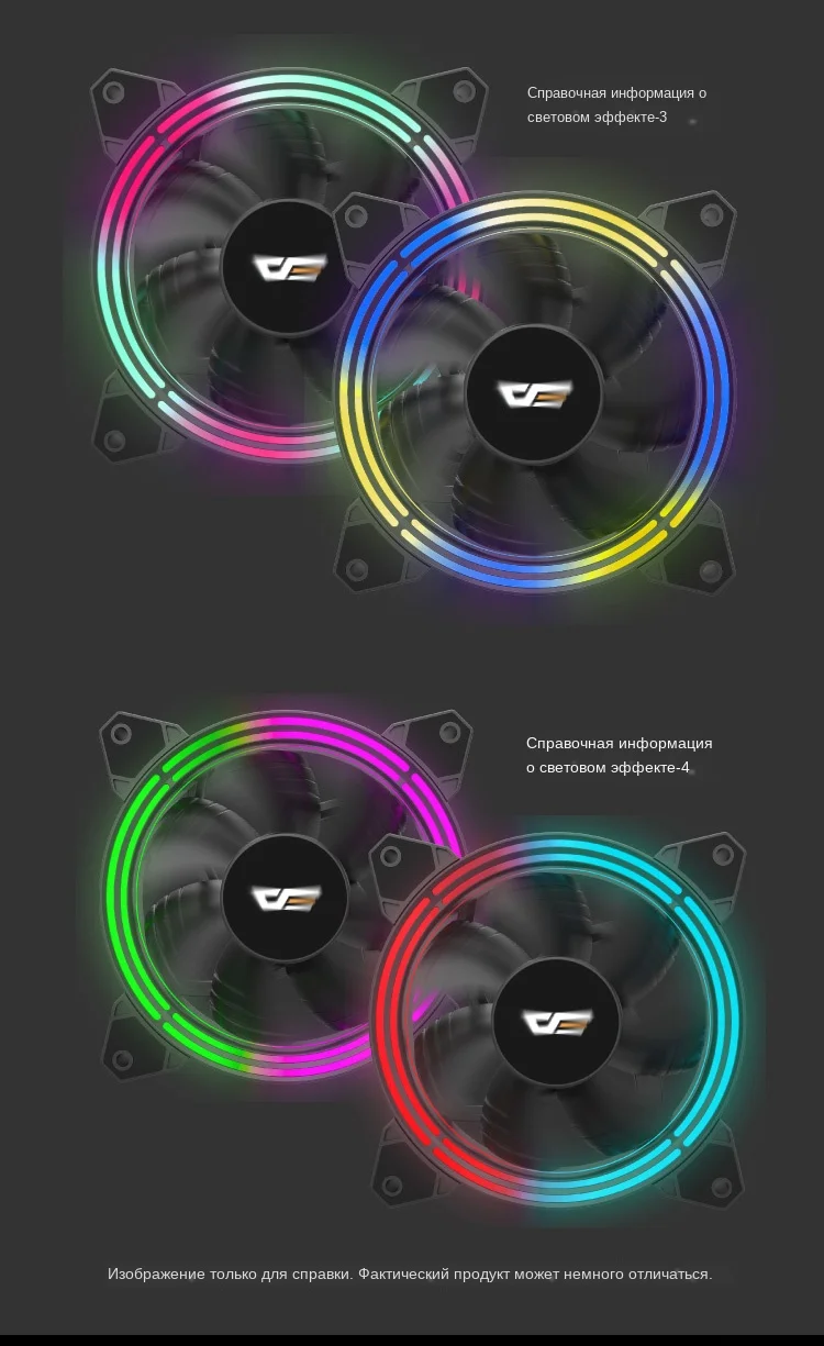 Особенности: 1: CF11PRO поддерживает синхронизацию AURA и управление скоростью вентилятора, а также Управление режимом светового эффекта RGB. 2: пульт дистанционного управления беспроводной работает скорость, режим и цвет. 3 светодиодный 3-го поколения имеет функцию плавного света. 4: Высокое качество и длительный срок службы: с гидравлическим дизайном подшипника, и сделаны из высококачественных экологически чистых материалов, которые сертифицированы CE & ROSH, aigoCF11PROВентилятор в корпусе ПК высокого качества и имеет срок службы до 25000 часов непрерывной работы. 5: Синхронизация RGB освещения через материнскую плату: Синхронизация всех5V 3PIN материнская платаВ том числеГигабайт, Asus, MSIИ так далее. Параметры: Aigo CF11 PROSpecification Размеры: 120x120x25MM Вес: 152,5 г Скорость вращения вентилятора: 1100 (± 10%) об/мин Шум: 23.5dBA (макс) Объём воздуха: 30CFM Подшипник: гидроопора • Сила тока: 0.35A Напряжение: 12V Номинальная мощность: 4,2 Вт Срок службы: 25000Hrs Посылка список: -1 вентилятор CF11: 1 * pc вентилятор; 1 * Руководство пользователя; 4 * установочных винтов -3 вентилятора CF11: 3 * шт вентилятор ПК; 1 * Руководство пользователя; 1 * ИК-контроллер; Размер: 12 * установочных винтов -5 вентиляторов CF11: 5 * шт вентилятор ПК; 1 * Руководство пользователя; 1 * ИК-контроллер; 20 * установочных винтов Обратите внимание: