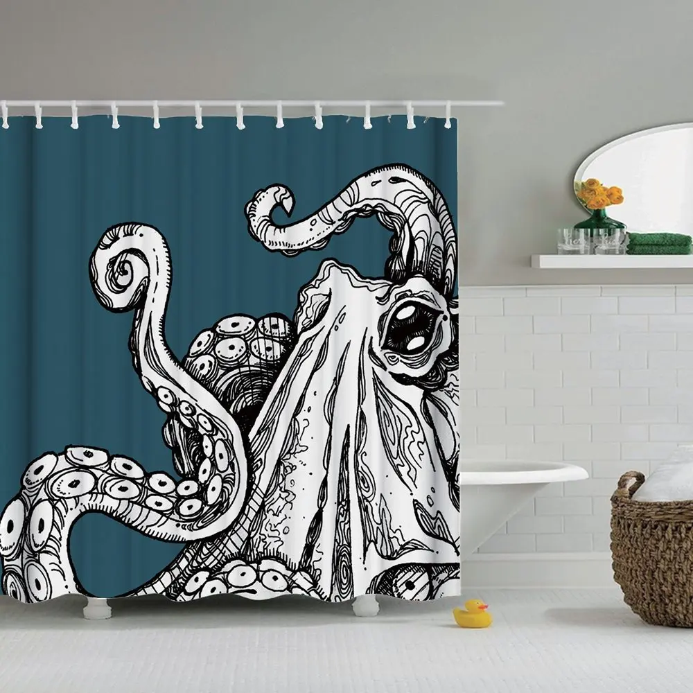 Dafield Осьминог Декор занавеска для душа парусная лодка волны и Осьминог старый вид ванная комната дизайн ручной рисунок эффект водонепроницаемая ткань