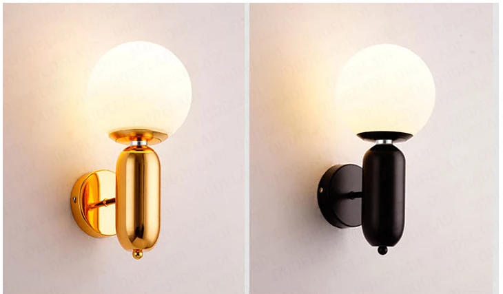 Современный светодиодный настенный светильник, черный/золотой/Белый, домашний осветительный светильник, настенный светильник для ресторана, гостиной, спальни, коридора, круглый стеклянный шар