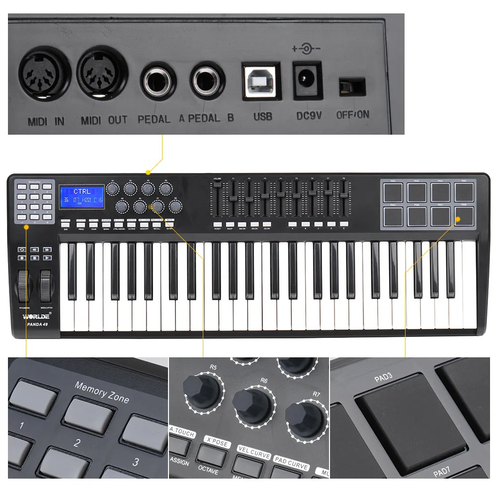 49 чувствительных к скорости клавиш с отличной производительностью.