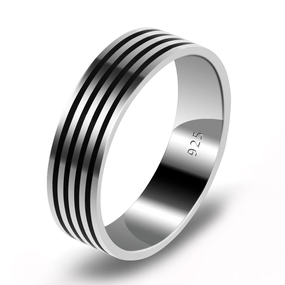 Парные кольца 2 шт./компл. серебро 925 пробы черная полоса Классический Простой