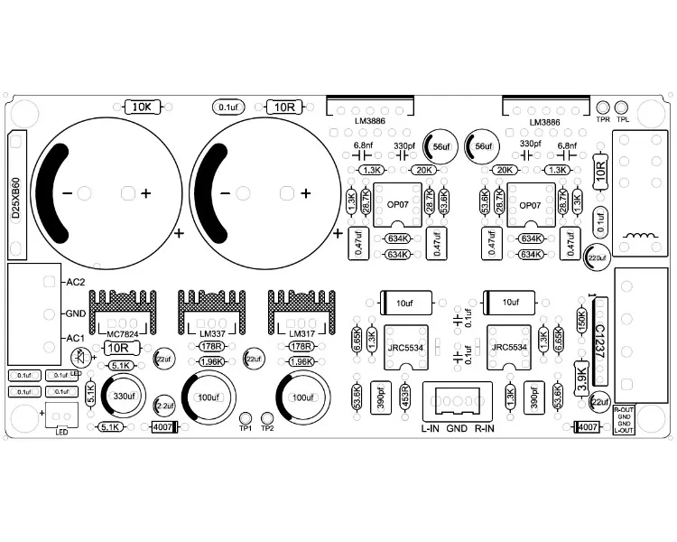◆ LM3886 чип усилителя мощности должен использовать радиатор, производители чипов устанавливают статическое энергопотребление 50 мА, есть определенная температура, это одна из важных причин того, что звук LM3886 лучше, чем у многих аналогичных чипов усилителя мощности, даже больше, чем у многих дискретных пар, линия трубы должна быть хорошей, Эта плата имеет пару книжных полок с 120 ваттами и 8 дюймами соответственно без давления.