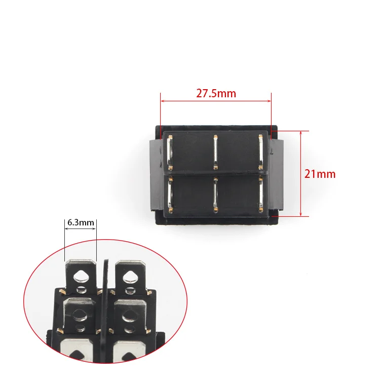 Название продукта: клавишный переключатель Полюсы: DPDT Цвет: красный, желтый, синий, зеленый светильник, синий Клеммы: 6-контактный (ВКЛ./ВЫКЛ./вкл.) Тип действия: защелка Номинальное напряжение: 250 В переменного тока 15A 125 В переменного тока 20A Размер: 3,1x2,5x2,5 см Размер крепления: 3,2x1,6x2,1 см Материал: пластик, металл Посылка: 1 шт. клавишный переключатель