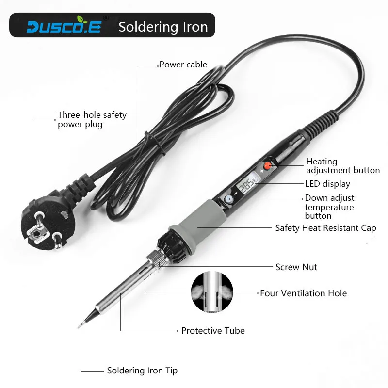 Так как есть много комплектов, пожалуйста, внимательно прочитайте и выберите, чтобы разместить заказ. Если у вас есть какие-либо вопросы, пожалуйста, оставьте сообщение. Вся установленная мощность составляет 60 Вт. Штепсельная Вилка стандарта США 110 В. Штепсельная Вилка европейского стандарта 220 В. Описание Передовая технология нагрева и охлаждения-внутренняя керамическая технология паяльника позволяет паяльнику быстро нагреваться и экономить энергию, она также хороша для стабильности температуры; четыре вентиляционных отверстия на паяльнике обеспечивают лучшее рассеивание тепла, что может продлить срок его службы.