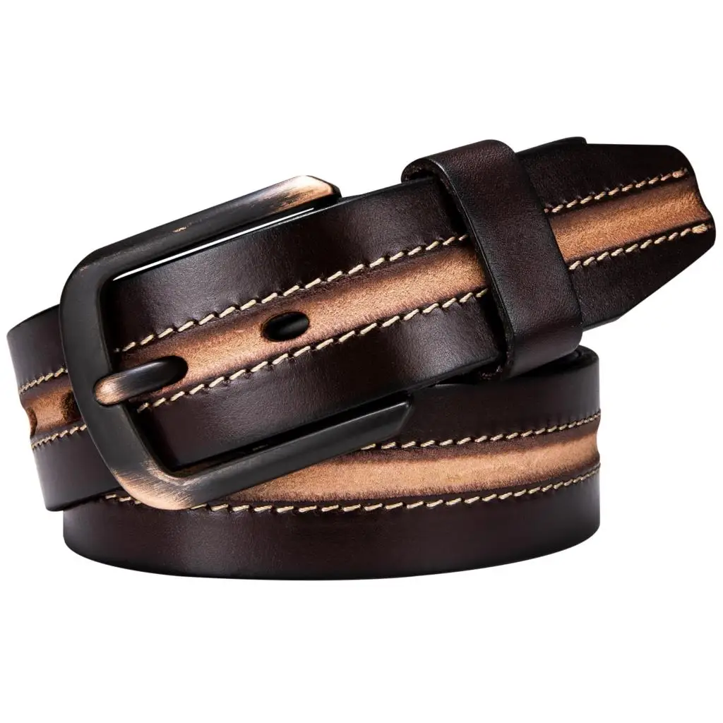 Мужской ремень Barry.Wang, винтажный Повседневный ремень из натуральной кожи с пряжкой, черный коричневый ремень в стиле ретро, ковбойский ремень для джинсов