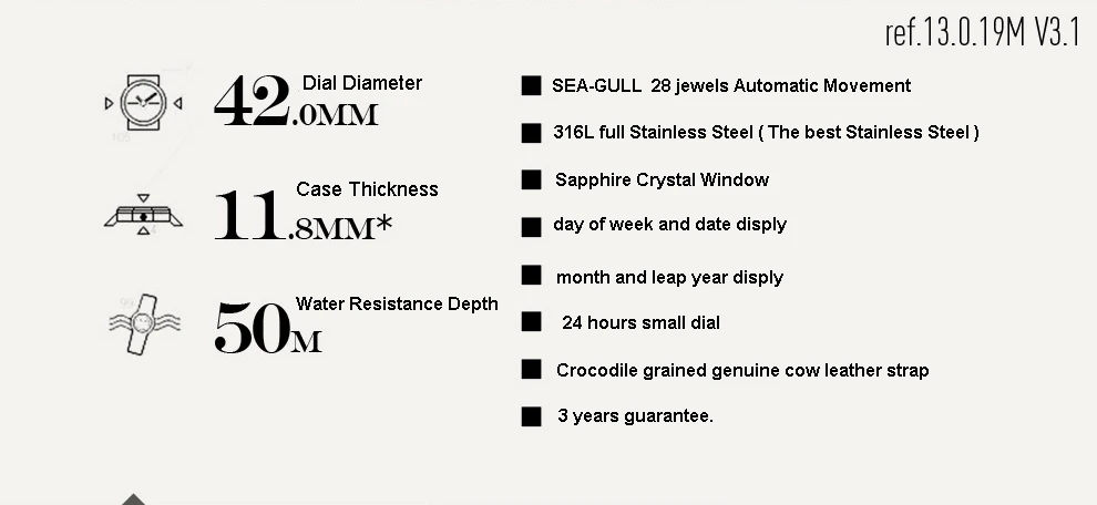 Посылка включает: Часы + LOBINNI box + Бесплатный товар (подарок) Характеристики: водонепроницаемость 50 м (подходит для плавания)/отображение недели/отображение месяца/Отображение даты/циферблат 24 часа/год Высокая цена соотношение: 28 драгоценностей движение/Сапфировое Окно 1 год ордер