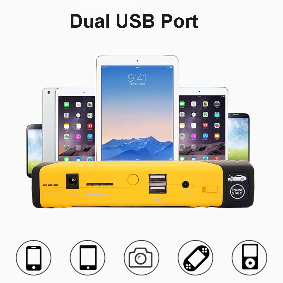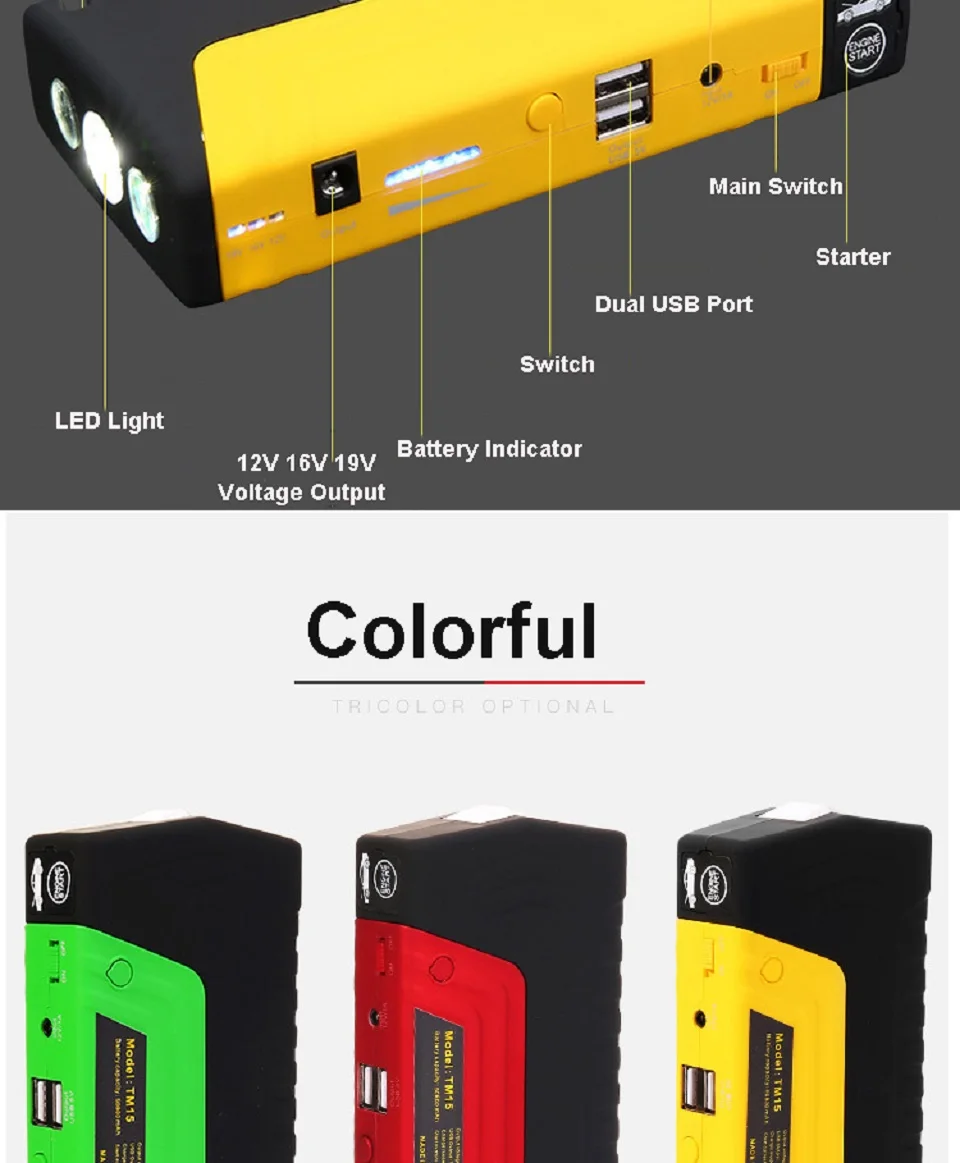 1. Мгновенно запустите автомобиль, безопасность и предметы первой необходимости 2. Эффективная интеллектуальная зарядка, с адаптером и линией зарядки, может быть применена к более чем 95% ноутбуку, Мобильные телефоны, планшетные компьютеры, камеры и другое электронное оборудование 3. 1 Вт супер яркий светодиодный фонарик, с режимом вспышки, может конвертировать аварийный режим SOS 4. Защита от температуры, защита от короткого замыкания, защита от постоянного напряжения, защита от постоянного тока, Защита от перезарядки, защита от разрядки, защита баланса, защита от магнитного поля Обязательно для каждого автомобиля: Начните свой любимый автомобиль, зарядите свою электронику, убедитесь, что ваш автомобиль может вернуться домой, когда он окажется на мель. Он начнет прыгать до 2.0L газовой машины на одной полной зарядке. (позвольте пусковому устройству остыть не менее 30 секунд после каждого запуска.)