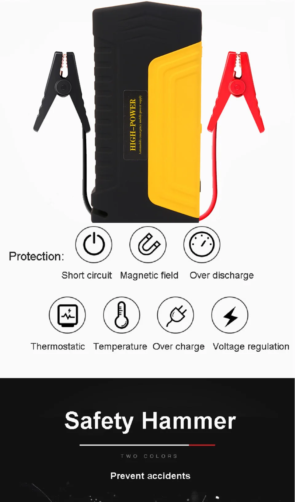 1. Необходимые компасы для альпинизма, кемпинга и других видов активного отдыха 2. Водонепроницаемый и пылезащитный 3. Емкость аккумулятора большая, прочная и безопасная. 4. Маленький размер, тонкий и легко носить с собой 5. Низкая термостойкость, высокая термостойкость 6. Обеспечение мощности автомобиля, запуск автомобиля в вспышке, просто решение дилеммы 7. Не нужно устанавливать, не нужно устанавливать, просто используйте зажим для подключения автомобиля положительным и отрицательным, Откройте выключатель питания, автомобиль может начать (красный-положительный, черный-отрицательный)