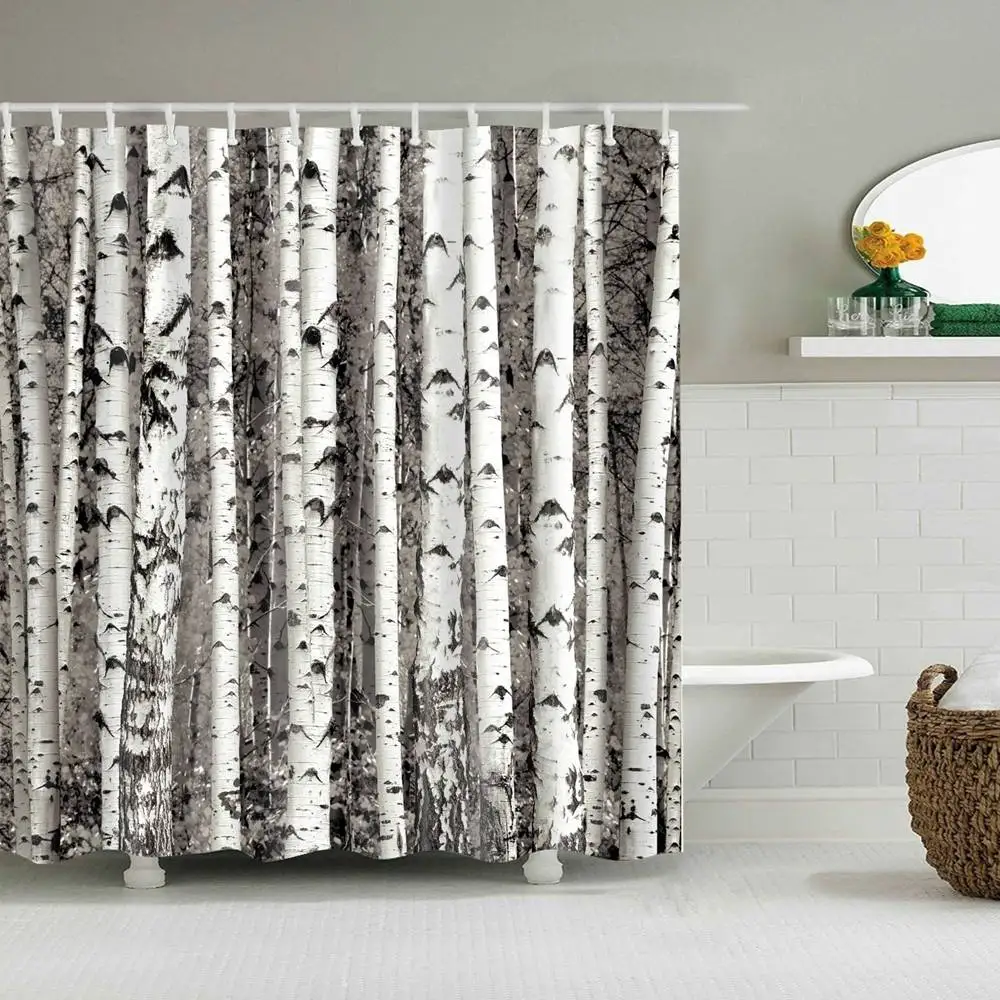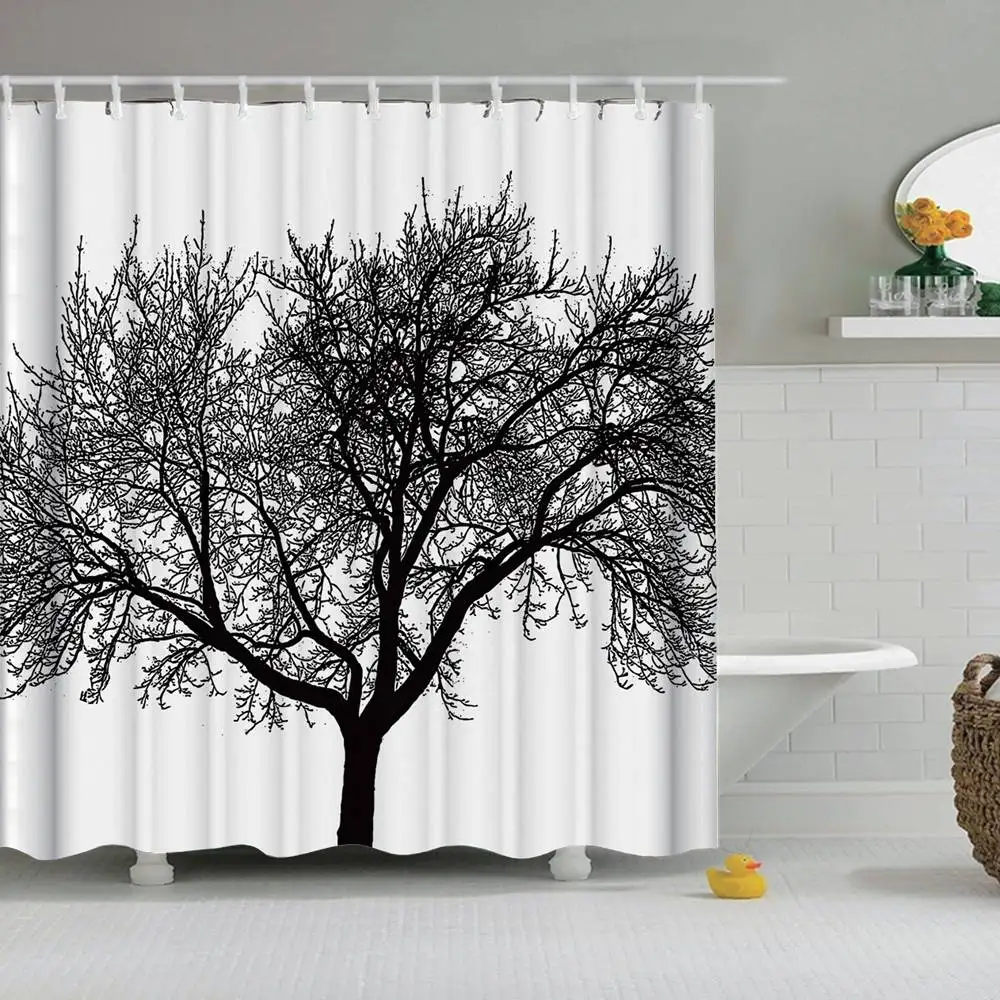 Dafield Березовое дерево занавеска для душа дерево художественное оформление для ванной дома ткань принт занавеска s Черный Серый занавеска для душа дерево
