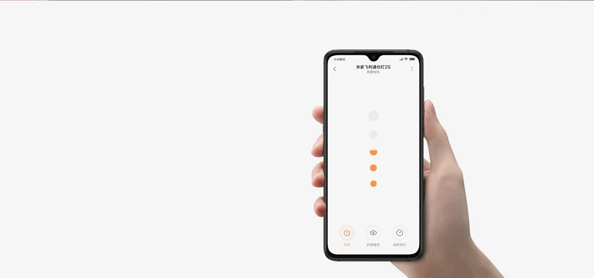 После доступа к приложении Mijia вы можете бесступенчато регулировать коэффициент освещенности настольной лампы в соответствии с различными требованиями к использованию.
