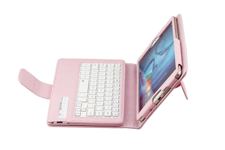1.Откройте кобуру клавиатуры Bluetooth и нажмите переключатель в правом нижнем углу от [0FF до вкл]. В это время активируется Кожаная клавиатура, и синий свет отключается через 3 секунды.