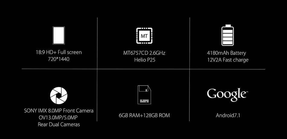 ЦП:Helio P25 Octa core 2,6 ГГц | ОС:Google Android 7,1 |