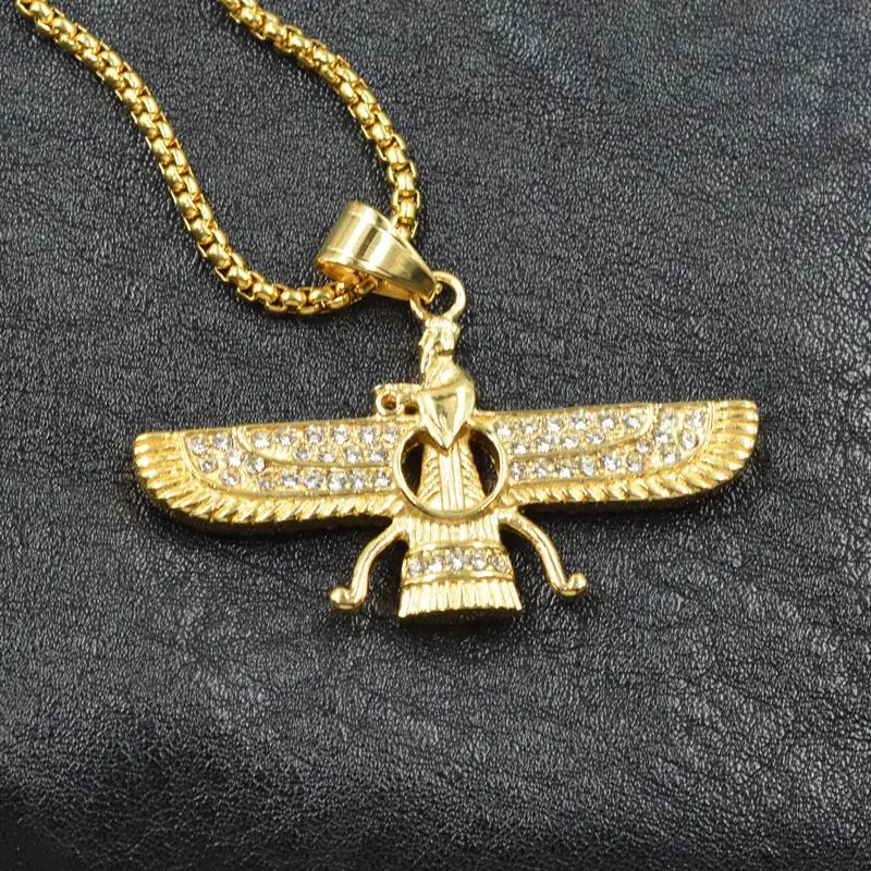 Золотая подвеска Faravahar Ahura, ожерелье из нержавеющей стали с цирконием, ювелирное изделие, Ahura Zoroastrian Achaemenian подвеска, Iran 1 шт., OPP мешок
