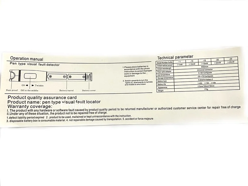 Обзор: Красный светильник FirstFiber pen, излучающий устройство с помощью полупроводникового лазера 650 нм, чтобы излучать красный светильник, стабильный и оптический интерфейс подключается к режиму themultimode и одномодовому оптическому волокну, функция обнаружения неисправностей из оптического волокна. Оптическая инженерная конструкция, техническое обслуживание сети, волоконно-оптические устройства незаменимые инструменты для производства и исследований.