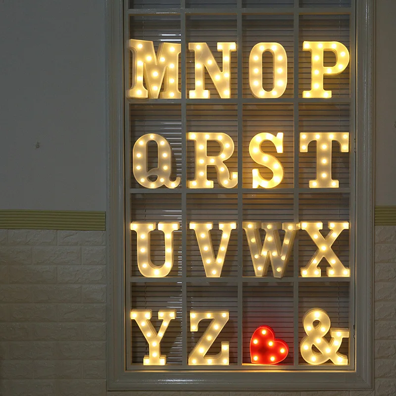 Белый пластиковый канцелярский светодиодный ночной Светильник Marquee знак Алфавит светильник s лампа для дома клуб Крытый украшения стены