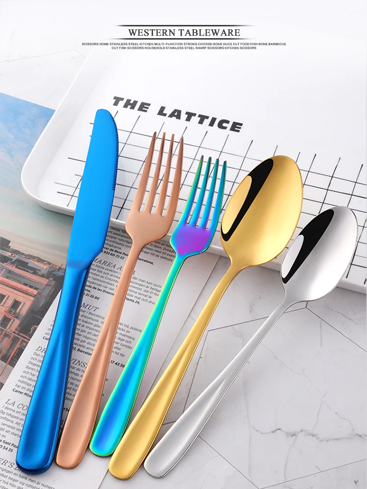 Упаковка:1 комплект = 5 шт.=1 столовый нож + 1 столовая вилка + 1 столовая ложка + 1 чайная вилка + 1 чайная ложка