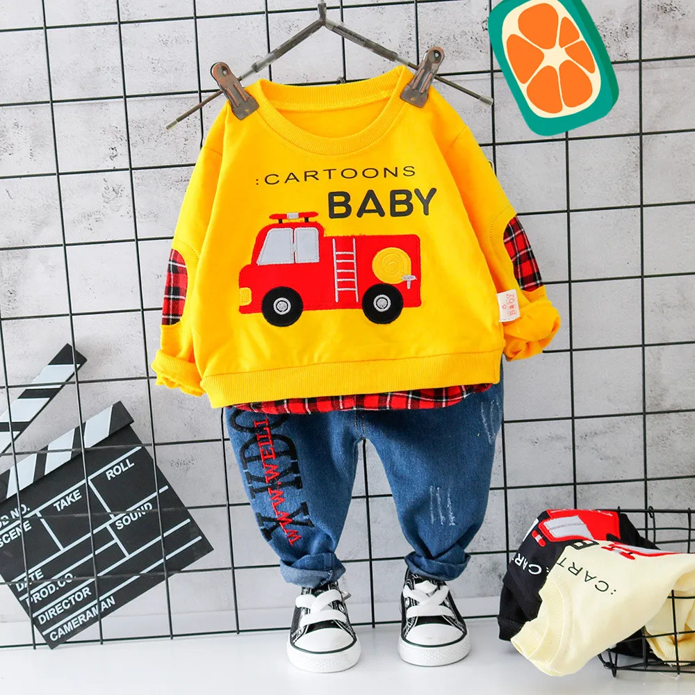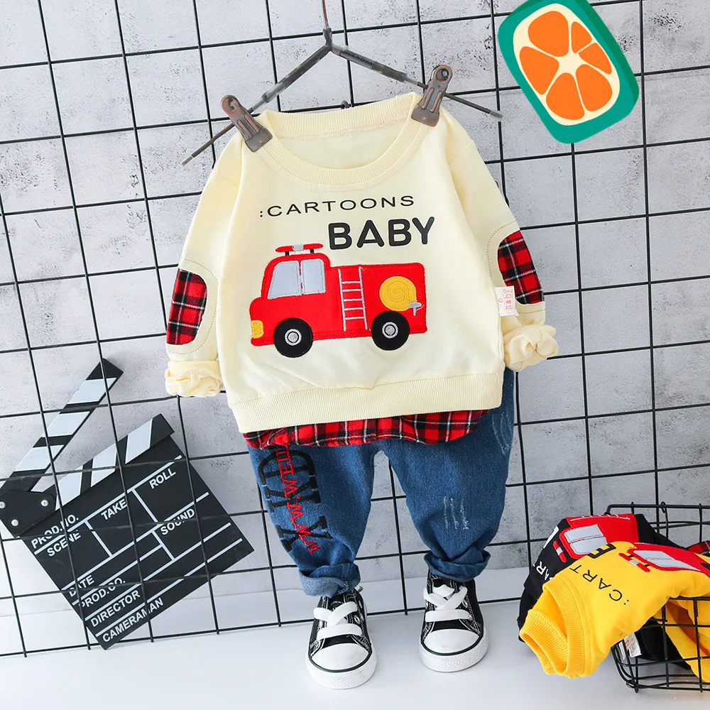 Новая модная осенне-Весенняя детская одежда для мальчиков и девочек, Спортивная футболка для отдыха с героями мультфильмов, штаны, 2 шт./компл., хлопковая одежда для малышейСпортивные костюмы для 0-4Лет