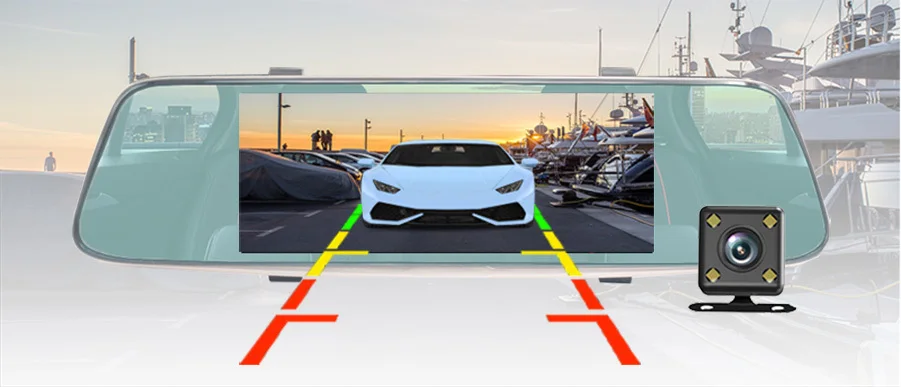 Пожалуйста, подключите красный кабель задней камеры с положительным полюсом питания обратной лампы автомобиля (+). А затем Подключите автомобильное зарядное устройство к прикуривателю для питания автомобильного видеорегистратора. Когда вы получите свой автомобиль в обратном направлении, Автомобильный видеорегистратор автоматически переключается на заднюю камеру с помощью линии парковки. Затем будет работать функция автоматического реверса.
