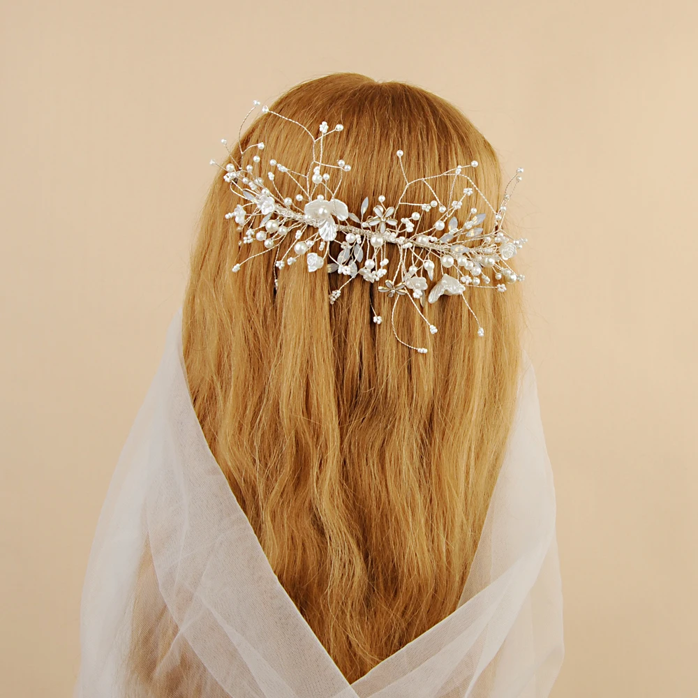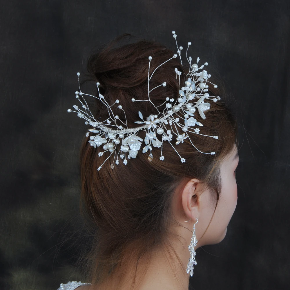 100% ручная работа, высокое качество и быстрая доставка! Материал: жемчуг Пол: Для женщин; Женская свадебная обувь Цвет: серебро Размер: 16*25/6.29*9,84 дюймов Способ ношения: оба конца закреплены маленькими зажимами Посылка включает в себя: 1 шт. свадебная корона для волос