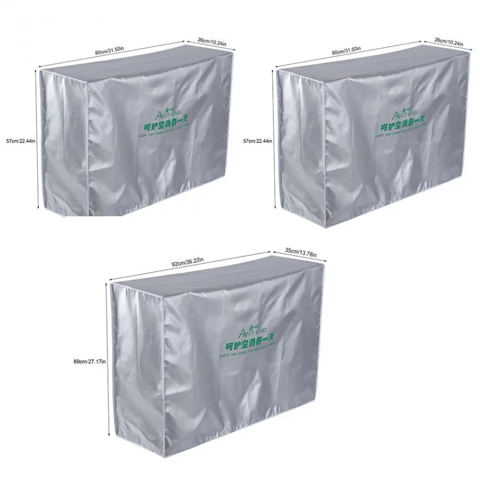 Серебряный стиль изготовлен из полиэстера, хорошо подходит для отражения солнечного света, замедляет старение машины. Чехол также водонепроницаемый и пыленепроницаемый. Он очень подходит для ваших кондиционеров снаружи. Защита от коррозии, дезодорирование. Легко чистится.