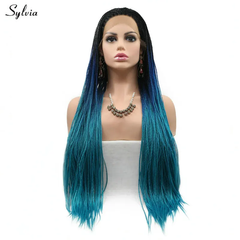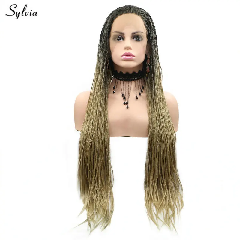 Сильвия черные корни Омбре коричневый/темно-синий/желтый блонд кружева спереди Плетеный парик синтетические коробки косы парики для женщин вечерние длинные волосы