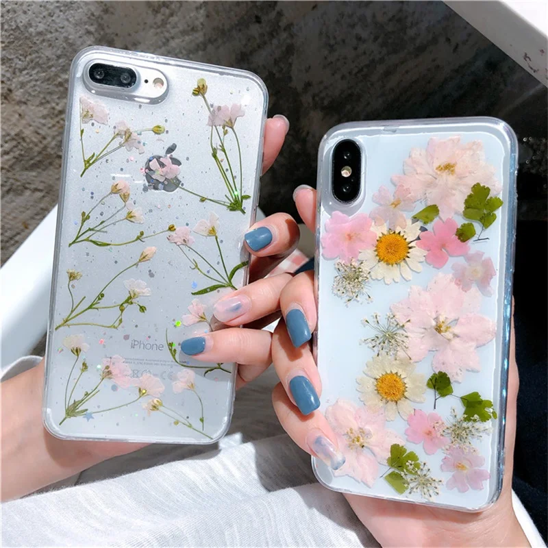 JAMULAR эпоксидной реальный сухой цветок для мобильного телефона, чехлы для iPhone XS MAX 8, 6, 6s, Plus, прозрачный мягкий чехол для задней крышки для iPhone X Фламинго листьев Fundas