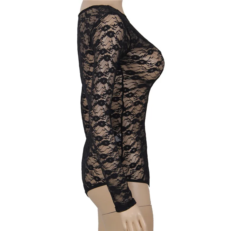 Женское Кружевное боди Ohyeahlover, черное прозрачное боди с длинным рукавом, плюс размер 3XL 5XL, обтягивающий комбинезон, RM80382