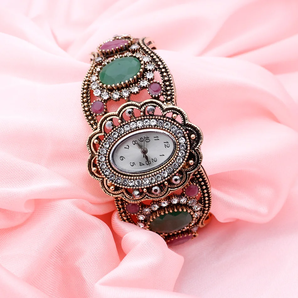 SUNSPICEMS Ретро Винтаж турецкие манжеты браслет часы ювелирные изделия античное золото цвет смолы индийский этнический свадебный подарок кварцевые наручные часы