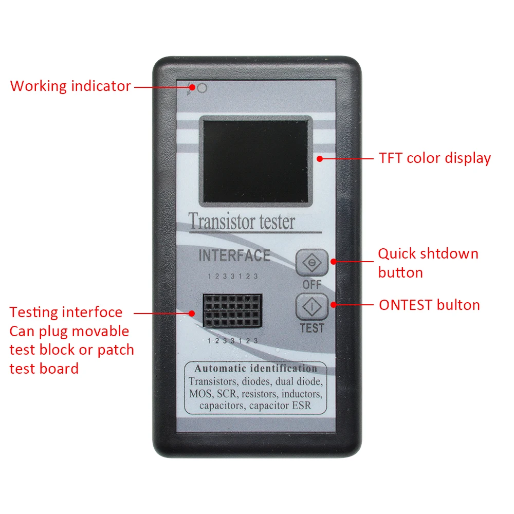 Диапазон испытаний конденсатора: 25pF-100000uF