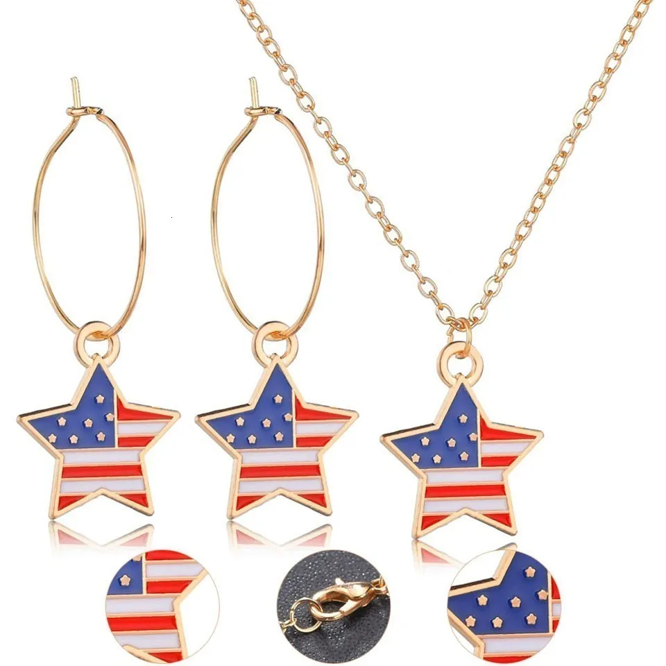 Женские новые модные серьги и ожерелье, модные наборы с флагом США, в форме звезды, Женские Ювелирные изделия, женские свадебные ювелирные изделия, золотая цепочка