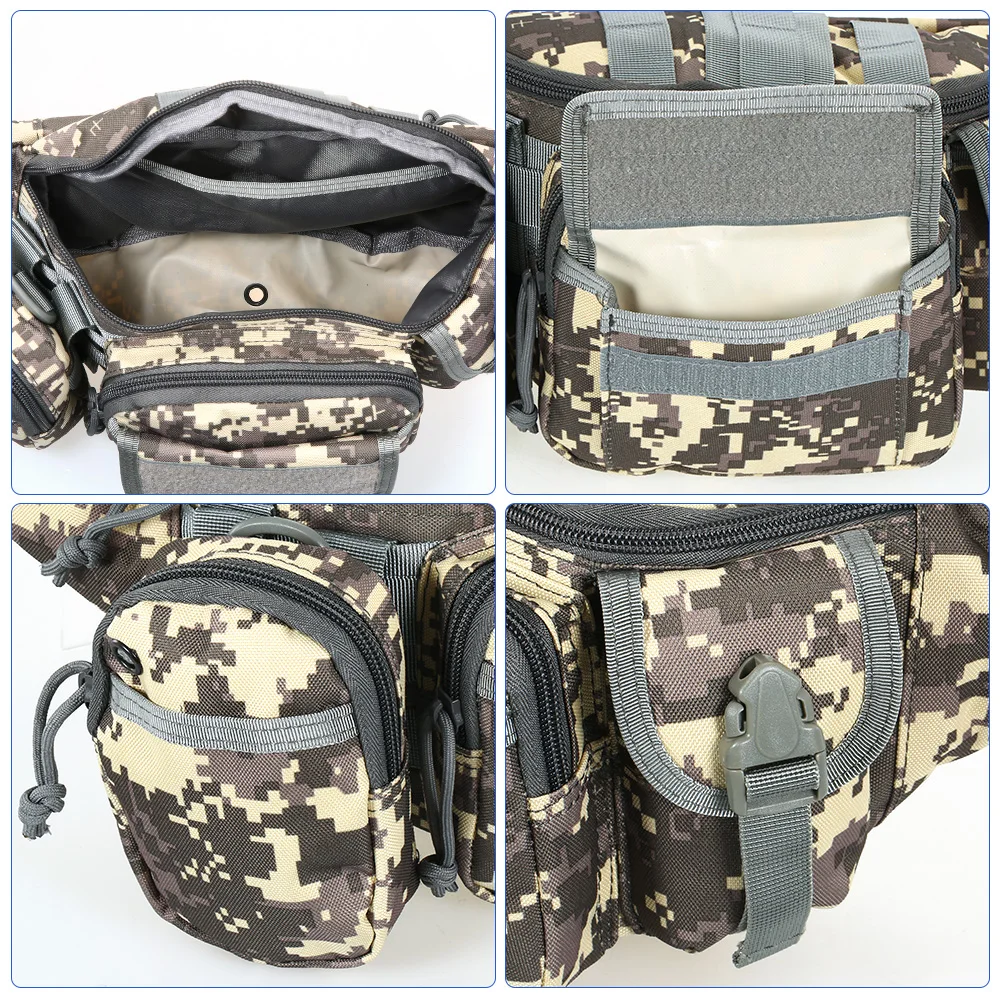 Эта сумка изготовлена из ткани Оксфорд 600D, водостойкая и износостойкая. Он имеет вместительный основной отсек, 2 боковых кармана и 1 передний карман, который обеспечивает большую емкость для хранения ваших передач и предметов. Ремень на талии регулируется для идеальной и удобной посадки. Отлично подходит для активного отдыха, например, охоты, кемпинга, путешествий, альпинизма, треккинга, велоспорта и многого другого.
