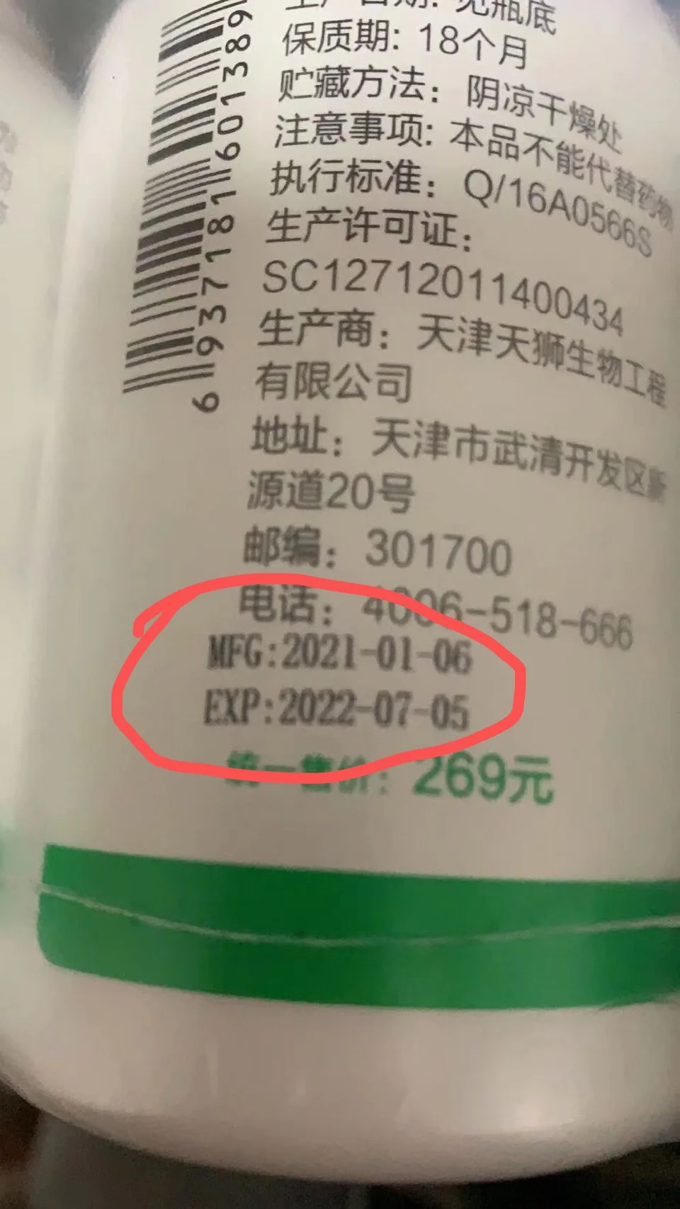 Для продуктов, произведенных в 2021 году, дата MFG и EXP напечатаны в стороне бутылки