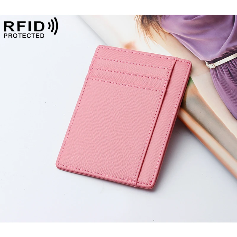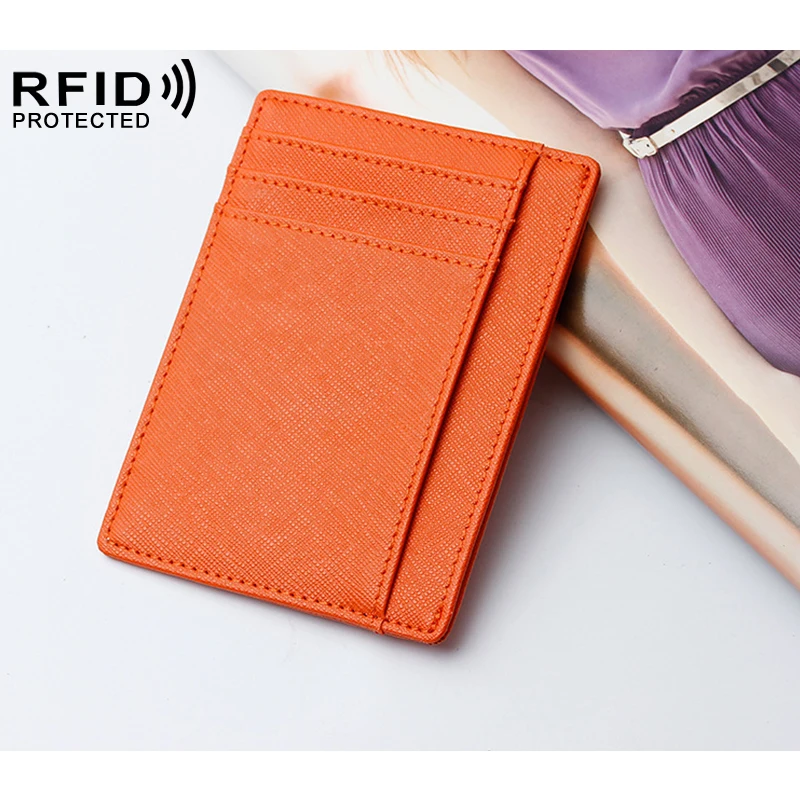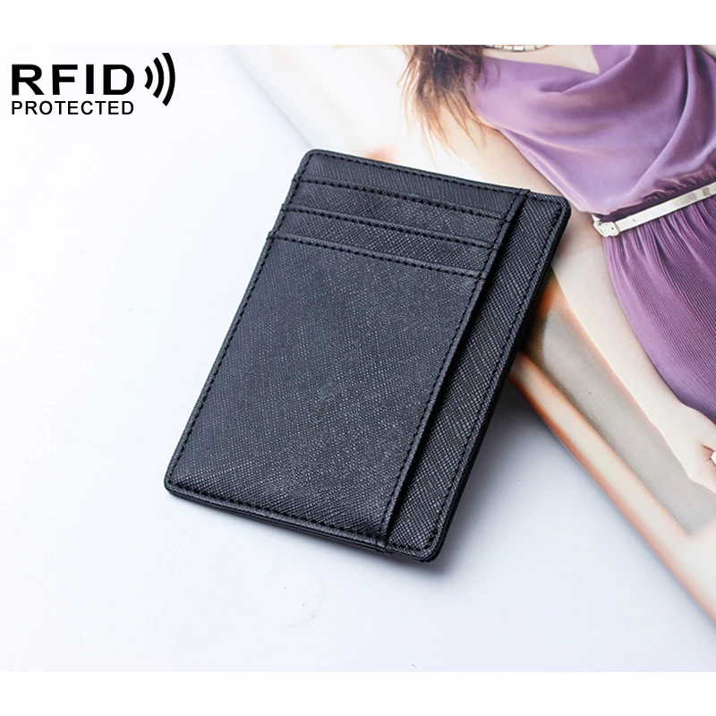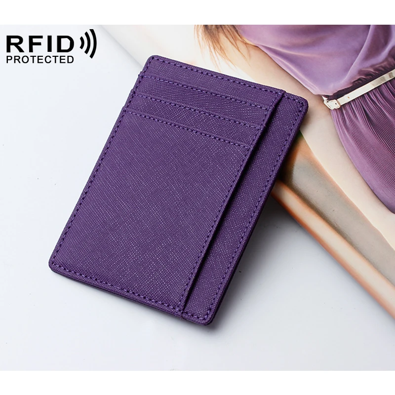 Ультратонкий бумажник из натуральной кожи с блокировкой RFID, держатель для кредитных карт, слот для нескольких карт, тонкий кошелек для мужчин и женщин