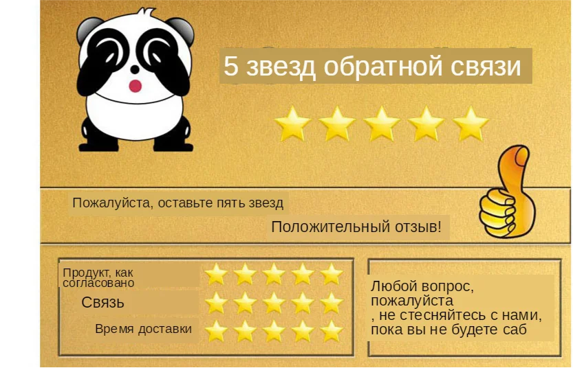 Доставка Обычно мы отправляем ваш товар авиапочтой Китая, E packet, Singapore post, Swiss Post и т. д. Доставка занимает 7-39 дней. Поскольку платформа Aliexpress обычно требует около 48 часов для проверки вашего платежа после подтверждения покупателем заказов на Aliexpress. Оплата Для вашего удобства, если вам нужно, мы можем декларировать ваши товары как «подарок/образец» в коммерческом счете-фактуре или таможенной декларации, И мы стараемся помочь вам минимизировать любые налоги на импорт GST или V.A.T. Но мы не можем гарантировать отсутствие налогов, которые зависят от политики вашей страны. Мы принимаем Alipay, paypal и т. д. Полная оплата должна быть произведена в течение 19 дней после размещения вашего заказа, если нет, заказ будет автоматически закрыт после этого. Цена, которую вы заплатили за товары, за исключением любого таможенного налога. У нас нет никаких пошлин в странах назначения. Сервис после продажи Мы предлагаем Своевременное послепродажное обслуживание, если у вас есть вопросы или проблемы с вашим заказом, пожалуйста, свяжитесь с нами сразу, вместо того, чтобы оставить отрицательный отзыв или открыть спор, также мы будем отслеживать его и работать с вами. Свяжитесь с нами через alibaba.com trade message или email, предоставьте как можно больше деталей (фото/видео) о проблеме, которую вы имеете. Если есть проблема с продуктом, мы предоставляем возврат без причины, однако, все выше основано на непредвиденном повреждении человека. Мы надеемся, что все покупатели будут здоровы и счастливы каждый день! Обратная связь