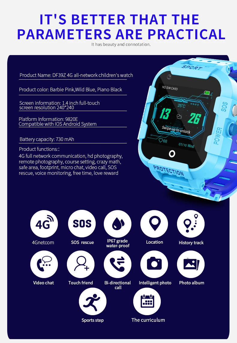 4G Смарт дети GPS трекер часы видео звонок WIFI GPS LBS местоположение IP67 Водонепроницаемый Дети слежения Смарт часы DF39Z