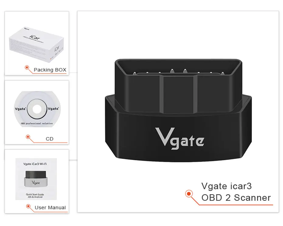 1 шт. x Vgate iCar3 1 шт. x руководство пользователя 1 шт. x цвет 1 шт. x цветная коробка