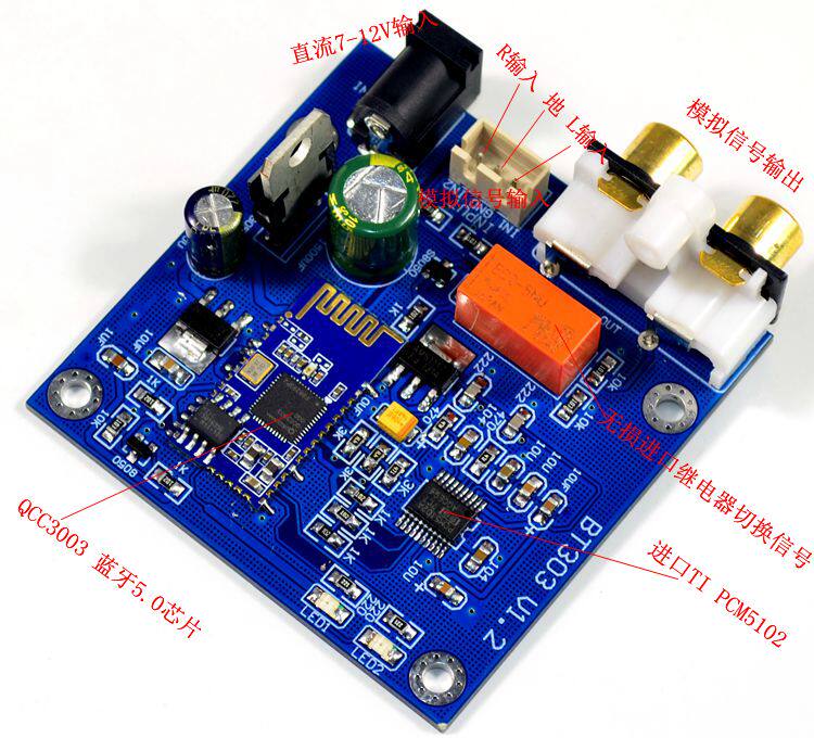 1: ядро Bluetooth использует чип CSR QCC3003, поддерживает A2DP, AVRCP, HFP, AAC, I2S и т. д., принимает чип флэш-памяти 16 M SPI. ЦАП принимает импортированный PCM5102