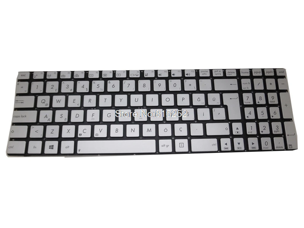 3. Клавиатура для ноутбука ASUS N550N550JA N550JK N550JV N550JX N550LF N750 Q550LFTR Турция серебро без рамки с подсветкой 0KN0-N43TU13 0KNB0-6625TU00 9Z.N8BBU.L0T 0KN0-N43TU23 0KNB0-6629TU00 9Z.N8BBU.NOT