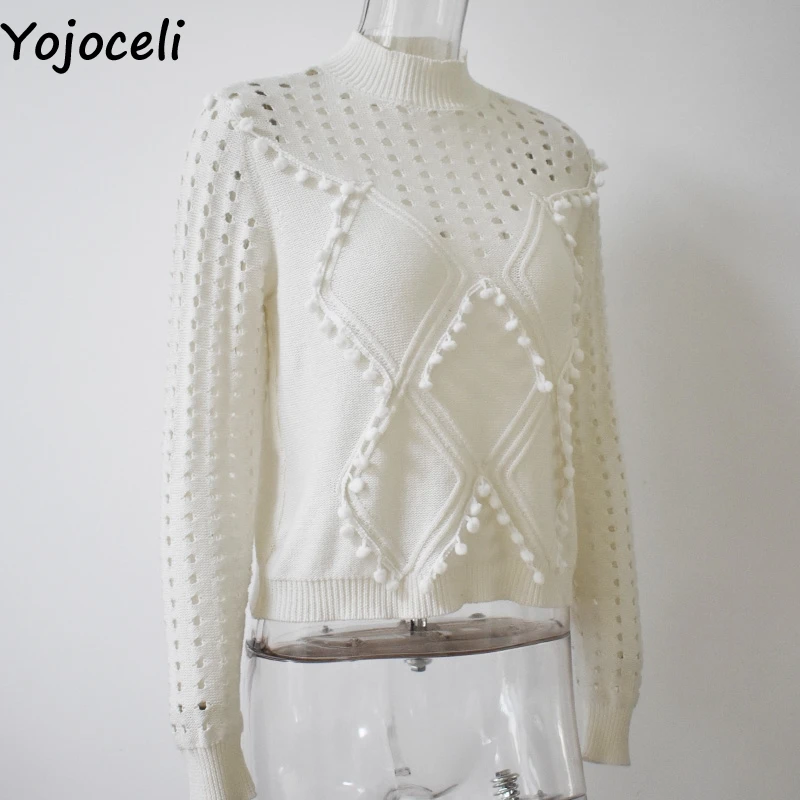 Женский вязаный пуловер Yojoceli, Осенний пуловер с круглым вырезом и помпонами, милый вязаный джемпер на зиму