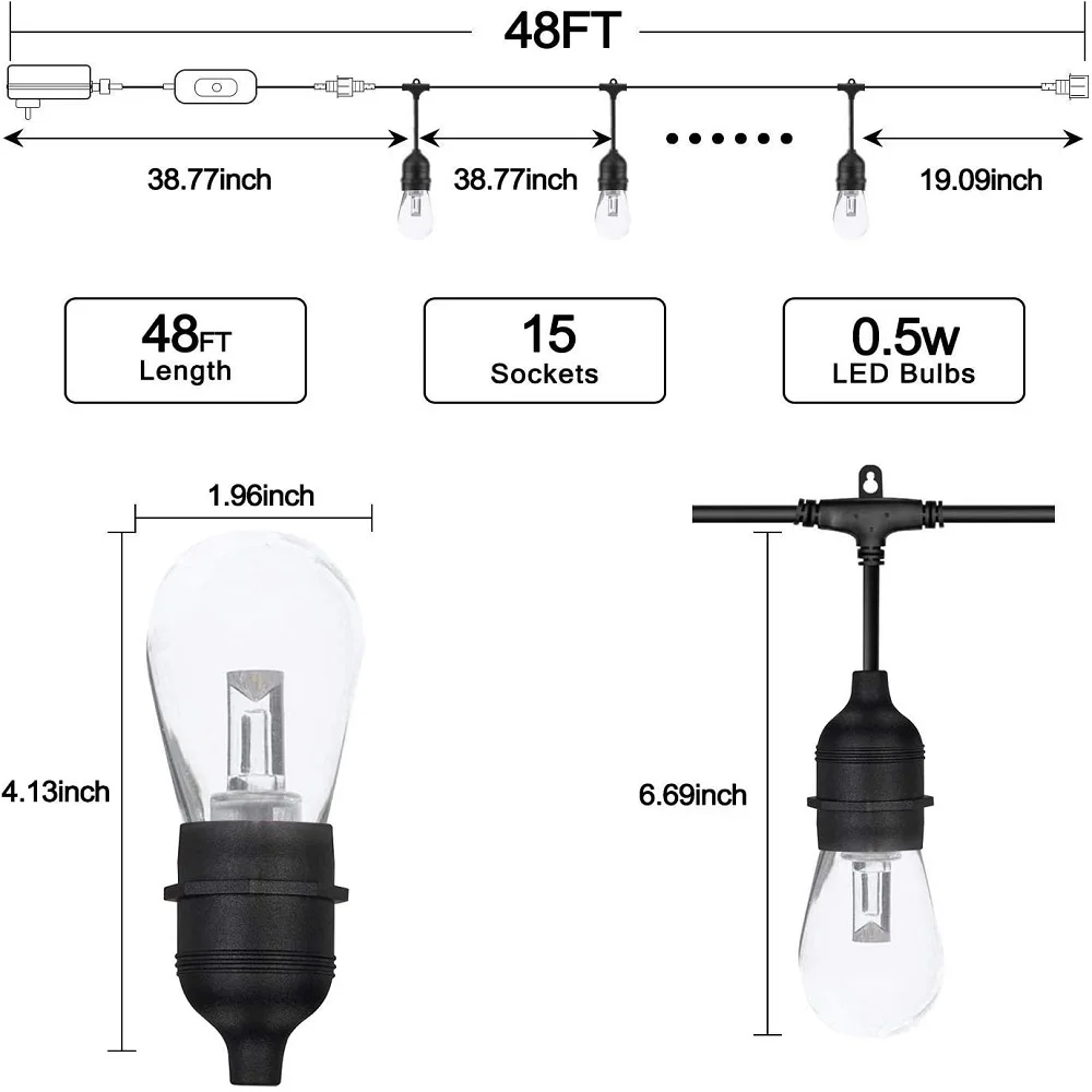15 м светодиодный гирлянда Рождественские огни Открытый водонепроницаемый E27 S14 теплый светодиодный Ретро Эдисон лампа накаливания уличный сад патио праздничное освещение