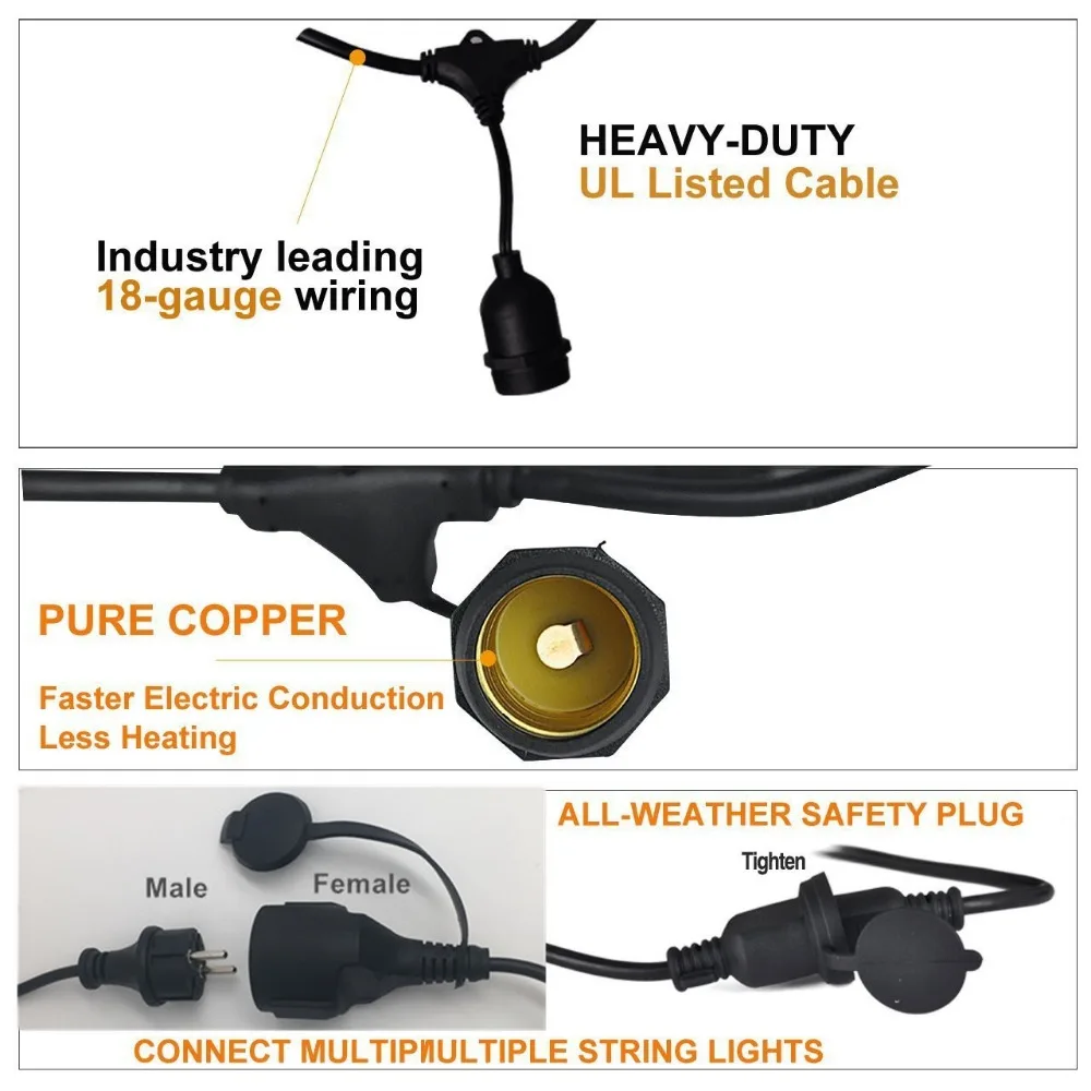 Водонепроницаемые световые струны IP65, они долговечны даже в дождливые дни