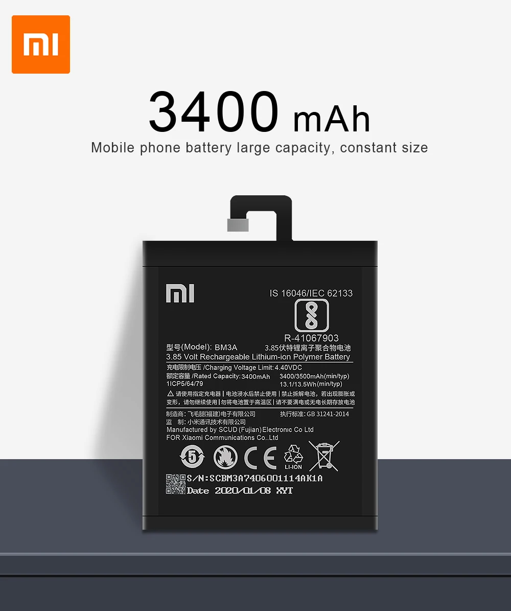 Xiao Mi Оригинальная батарея BM3A для Xiaomi Note 3 Mi Note3, сменная батарея 3300 мАч, Высококачественная батарея для телефона с бесплатными инструментами