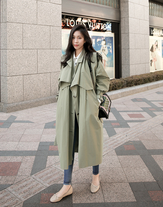 Корейский стиль, весна 2019, длинный Женский Тренч, повседневное пальто с поясом, шаль, тонкое однобортное пальто армейского зеленого цвета QV494